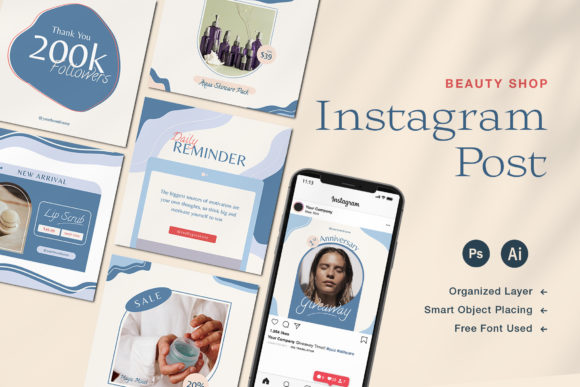 Beauty Shop Instagram Post is a multi-purpose pack to promote your business. This pack great for designers, bloggers, creators, and entrepreneurs. This pack will greatly​ influence your audience. Change the text, colors, images, strokes, and shapes to achieve the best result you want.