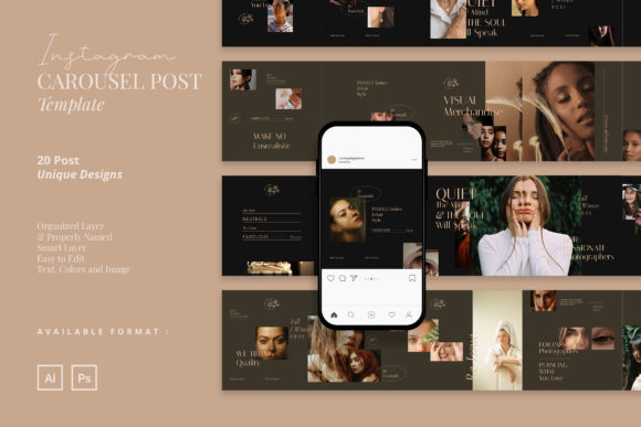 Put off the old ways to post multiple images by multiple posts, make your multiple Instagram post more organized and well-maintained by using this Beauty Instagram Carousel Template. This template is a perfect choice for fashion designer, model agency, cosmetic products, product display or catalogue, photographer, creator, travel vlogger or blogger, product launching and many more.