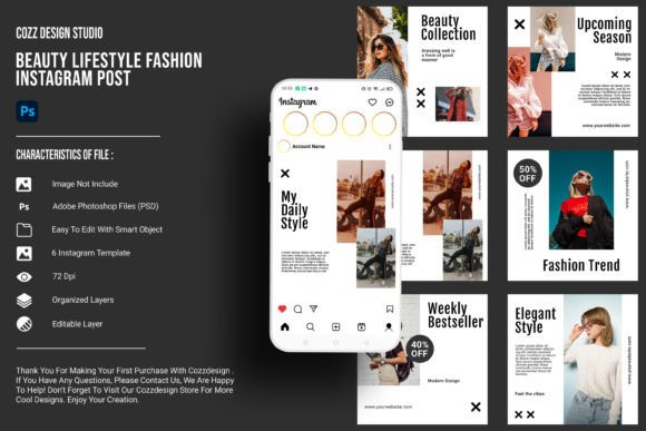 Beauty Fashion Instagram Post Template Collection A quality social media template that you can download for all social media packs with easily editable content and great quality design, you can customize it according to your various wants and needs with ease.