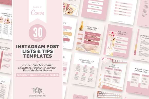 30 Instagram Posts templates, which are easily editable in Canva Templates for High-Value Content: Lists | Tips | Checklists | Resources | Educational Social Media Content.