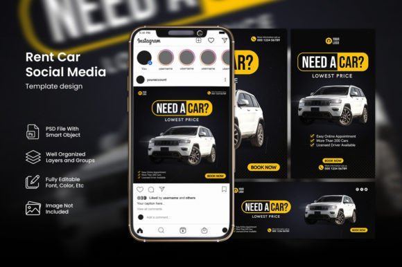 A clean and stylish template for Instagram, ideal for rent-a-car and auto sales promotion. Simple image replacement and high-quality scaling included.