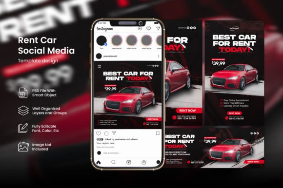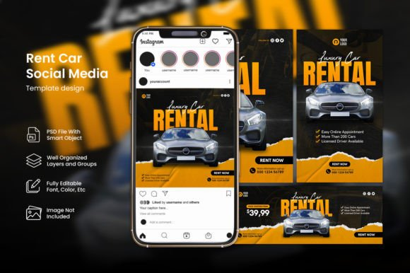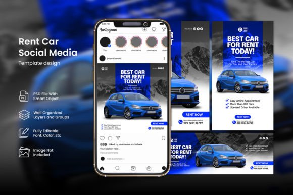 Creative and modern rent car and sale car instagram template designed to promote your rent car and sale car business. This instagram template perfect for any personal or corporate use. You can easily edit this instagram template. You can change image with the smart object. You can resize all object without reducing the image quality.