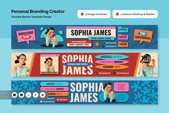 Elevate your channel identity with a playful yet modern YouTube banner design crafted for personal branding.